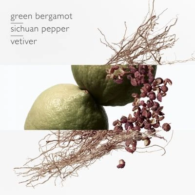 A l’horizon, une autre Terre. Le vétiver, enraciné dans Terre depuis ses origines est le point d’orgue de cette nouvelle composition. L’équilibre originel de Terre, boisé et minéral, se mue en un boisé végétal.